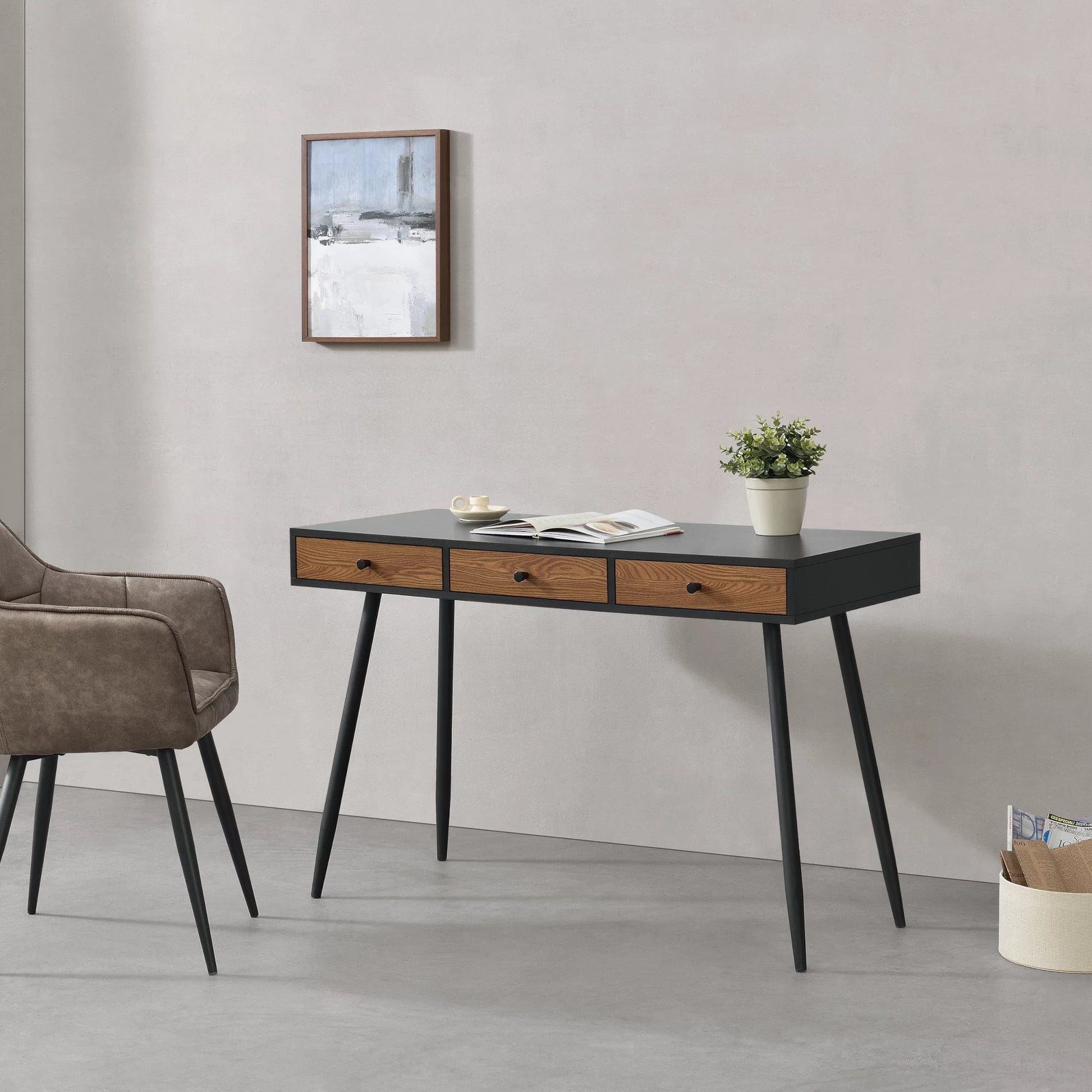 In And OutdoorMatch Desk Bryce - With Drawers - 115x48x75 cm - Wood-colored and Black - Chipboard and Metal - Modern Design