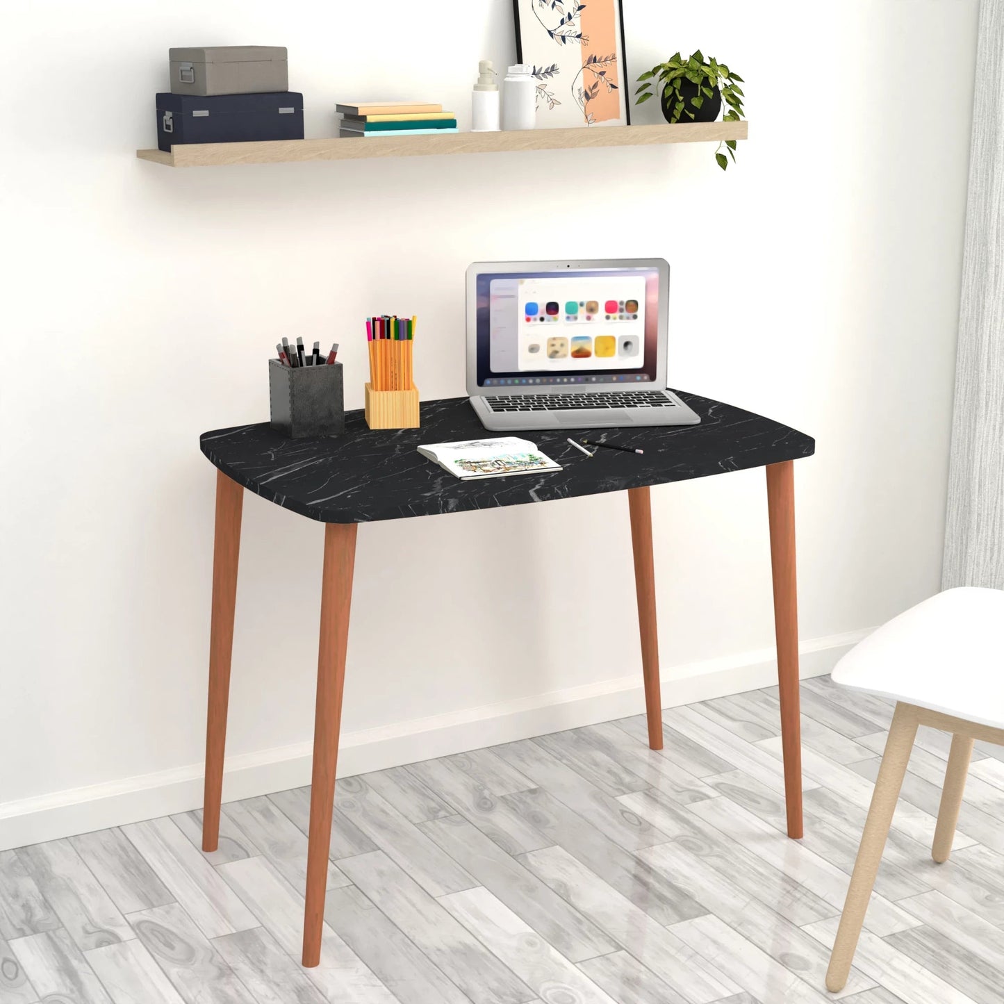 In And OutdoorMatch Bureau Zeno - Laptop table - 70x90x60 cm - Marble Black and Wood-colored - Chipboard and Beech wood - Stylish Design