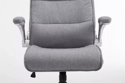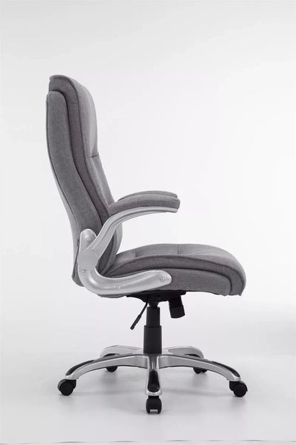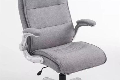 The office chair is ideal for tall and heavy people, because the gas spring is designed for long-term use up to 150 kg. It is an office chair with high-quality upholstery and a modern fabric cover, which not only looks beautiful, but is also particularly robust and easy to maintain. The seat height can be infinitely adjusted using the lever under the seat, which guarantees ergonomic sitting. The built-in rocking mechanism and folding armrests provide more freedom of movement. The frame of the office chair is made of sturdy plastic. It stands safely on five robust wheels. Whether it concerns hard floors or carpet, you always roll easily and loosely over the floor.