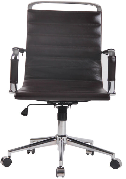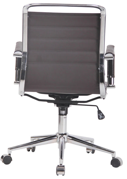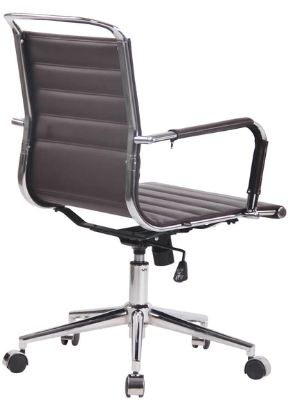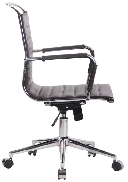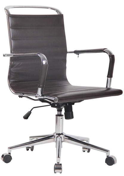 This Hennie office chair not only convinces with its modern appearance, but in terms of comfort, no one can beat it. The swivel chair is available with artificial leather or real leather upholstery and is particularly easy to maintain. In addition, the seat height is infinitely adjustable and guarantees an ergonomic sitting position. Furthermore, the office chair is equipped with a rocking mechanism that provides more freedom of movement. Stability is guaranteed by the metal frame with chrome look. Thanks to the five smooth-running wheels, you can roll easily and loosely across the floor – both on hard floors and carpeting. The elegant chrome frame and the sturdy, curved armrests give the whole thing that little bit extra and complete the design.