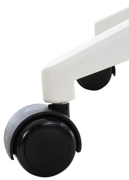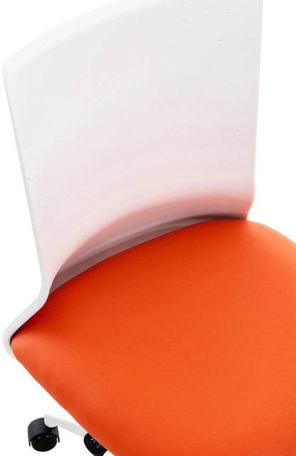 This Odalyss office chair not only convinces with its modern design, but no one can beat it when it comes to comfort. The swivel chair is comfortably padded and has a choice of artificial leather or fabric upholstery, making it particularly easy to maintain. The stepless height adjustment and backrest make it possible to sit comfortably for several hours. Stability is guaranteed by the white plastic frame. Thanks to the five smooth-running wheels, you can roll easily and loosely over the floor, both on hard floors and carpeting. The elegant frame and the mix of the colored seat with the white backrest give the whole thing that little bit extra and complete the design.