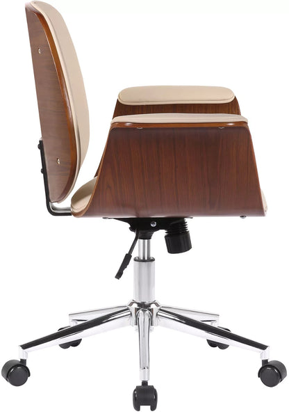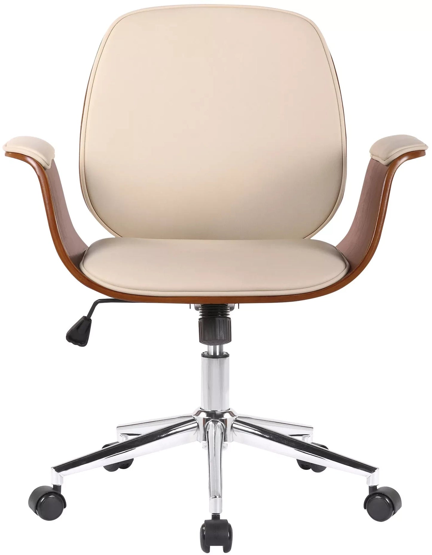 In And OutdoorMatch Design Office chair Jillian - Beige - Brown wood - artificial leather - height adjustable - 44x45x90cm