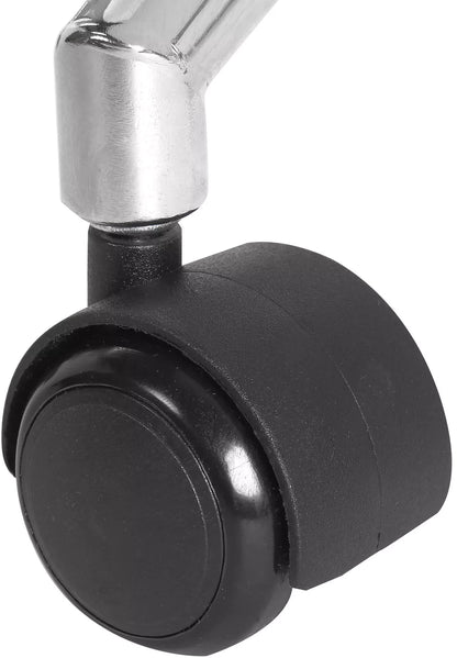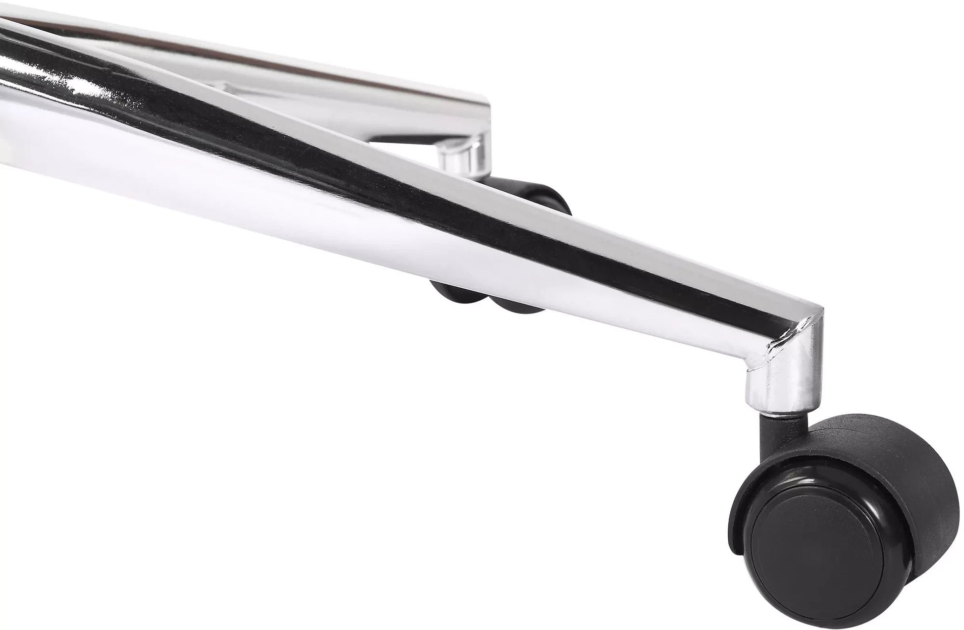 The Jillian office chair not only convinces with its modern appearance, it also fools no one in terms of comfort. The swivel chair has an artificial leather upholstery and is therefore particularly easy to maintain. In addition, the seat height is infinitely adjustable, which guarantees an ergonomic seat. Furthermore, the office chair is equipped with a rocking mechanism that provides more freedom of movement. Stability is guaranteed by the metal frame with a chrome finish. Thanks to the five smooth-running wheels, you can roll easily and loosely over the floor - whether on hard floors or carpets. The elegant chrome frame and the stable, curved armrests give the whole thing that little bit extra and complete the design.