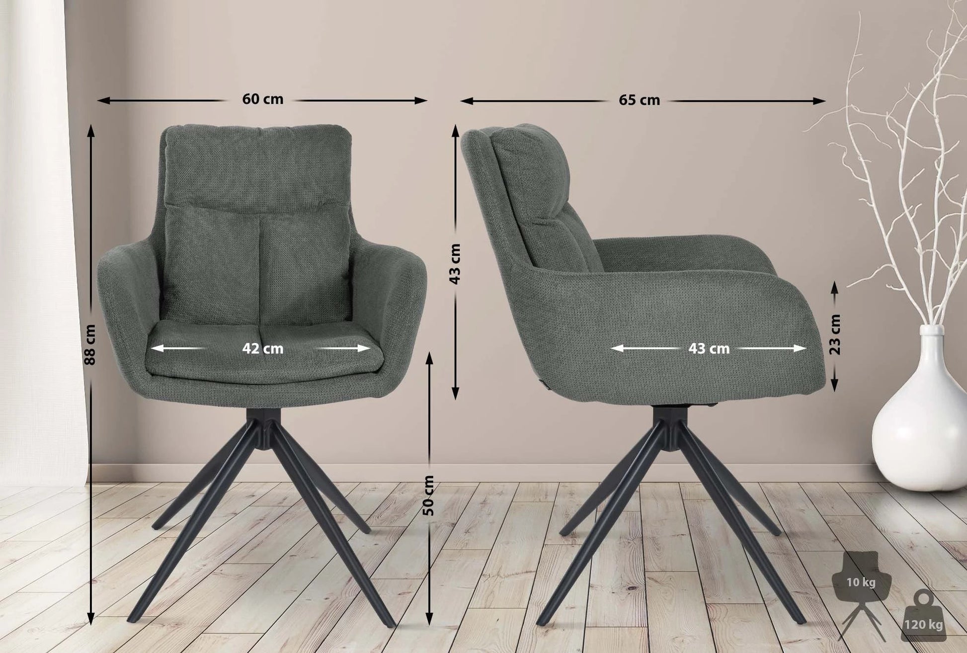 In And OutdoorMatch Dining Room Chair Florina - Gray - Fabric - With Armrest - High-quality Upholstery - Stylish Dining Room Chair - Deluxe Look
