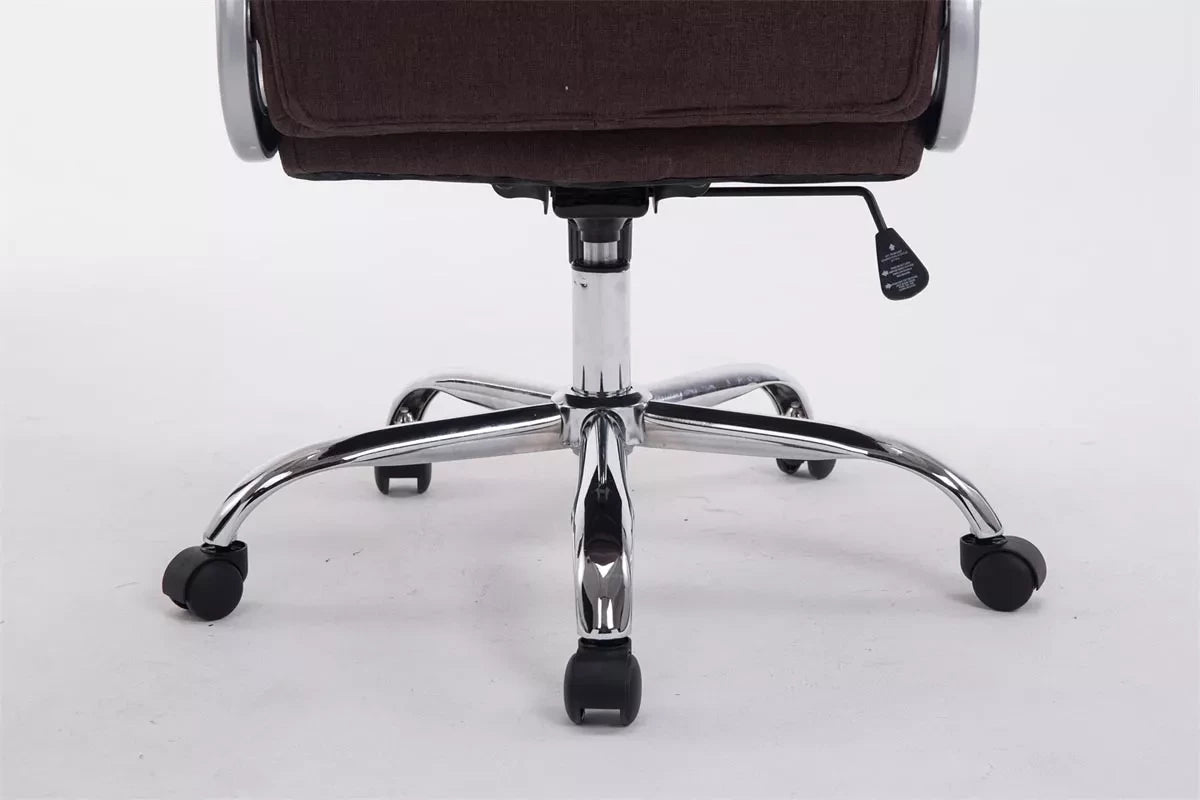 The executive chair is an exclusive office chair with very high-quality upholstery and fabric upholstery. The advantage of the fabric covers is that they are elastic and straighten out when the load is lightened. This not only looks nicer, but also extends the life of the seat cover. The frame is made of metal with a chrome look and is therefore very stable. Thanks to the adjustable seat height, ergonomic sitting is guaranteed. The seat height is infinitely adjustable with the lever under the seat. The built-in rocking mechanism provides more freedom of movement. The office chair stands safely on five smooth-running wheels. Whether it is hard floors or carpets, you always roll easily and loosely over the floor.