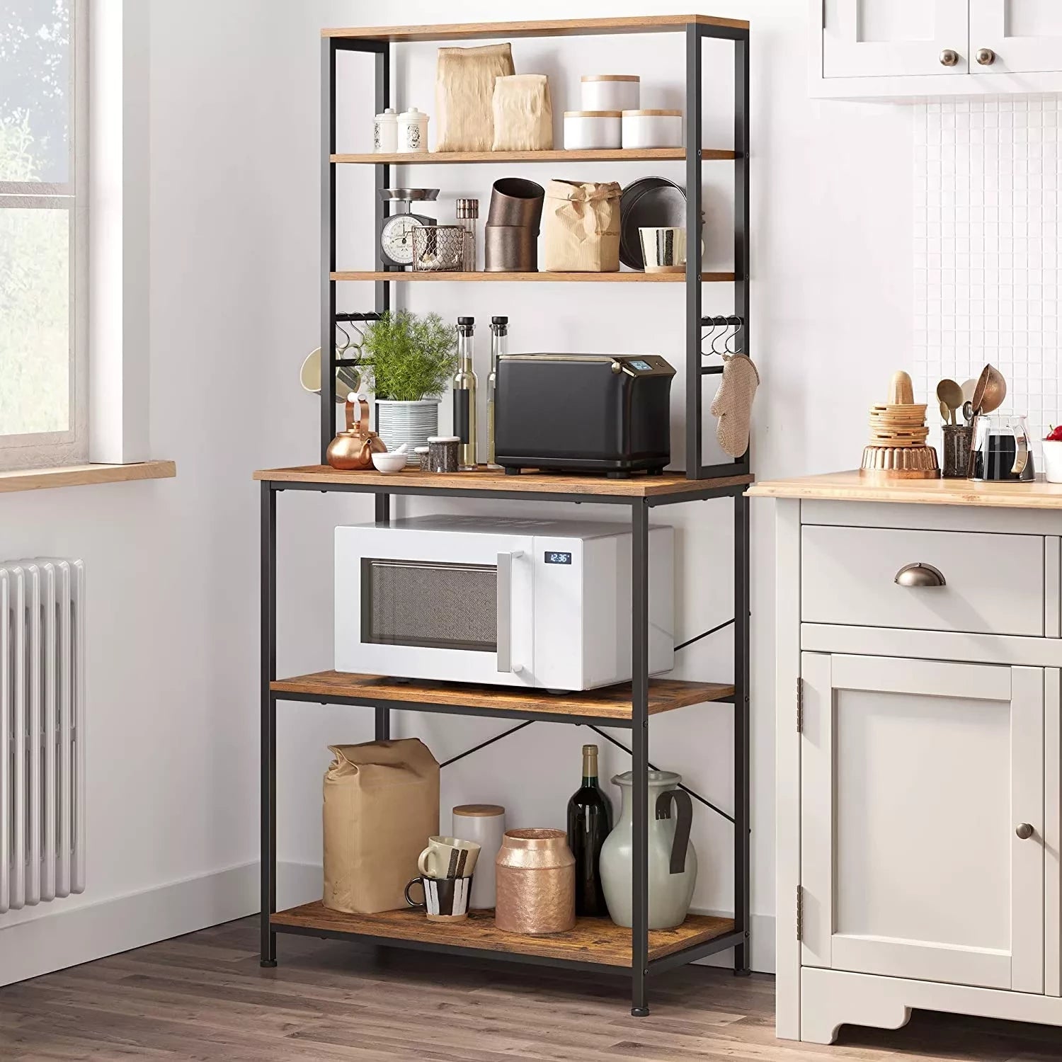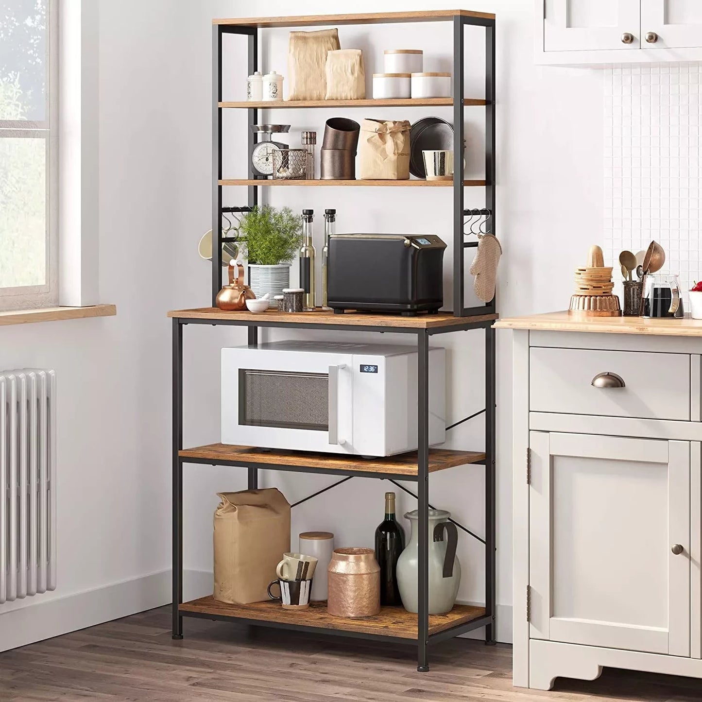 Kitchen chaos coordinators, welcome! Items that clog the kitchen worktop, such as a coffee maker and a toaster, can now find a new home on the 4-shelf kitchen rack. Make optimal use of space. Easier than you think: cooking is not easy, but putting this piece of furniture together. The secret is in the clear instructions and well-marked parts. Within 30 minutes you will have a practical storage system in the kitchen. S-shaped hooks: space, style, stability, easy assembly, what more could you want? 6 S-shaped hooks. You can hang your most used utensils from the cutting board to the tea towel - no more cluttering with clogged drawers!