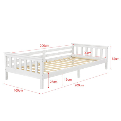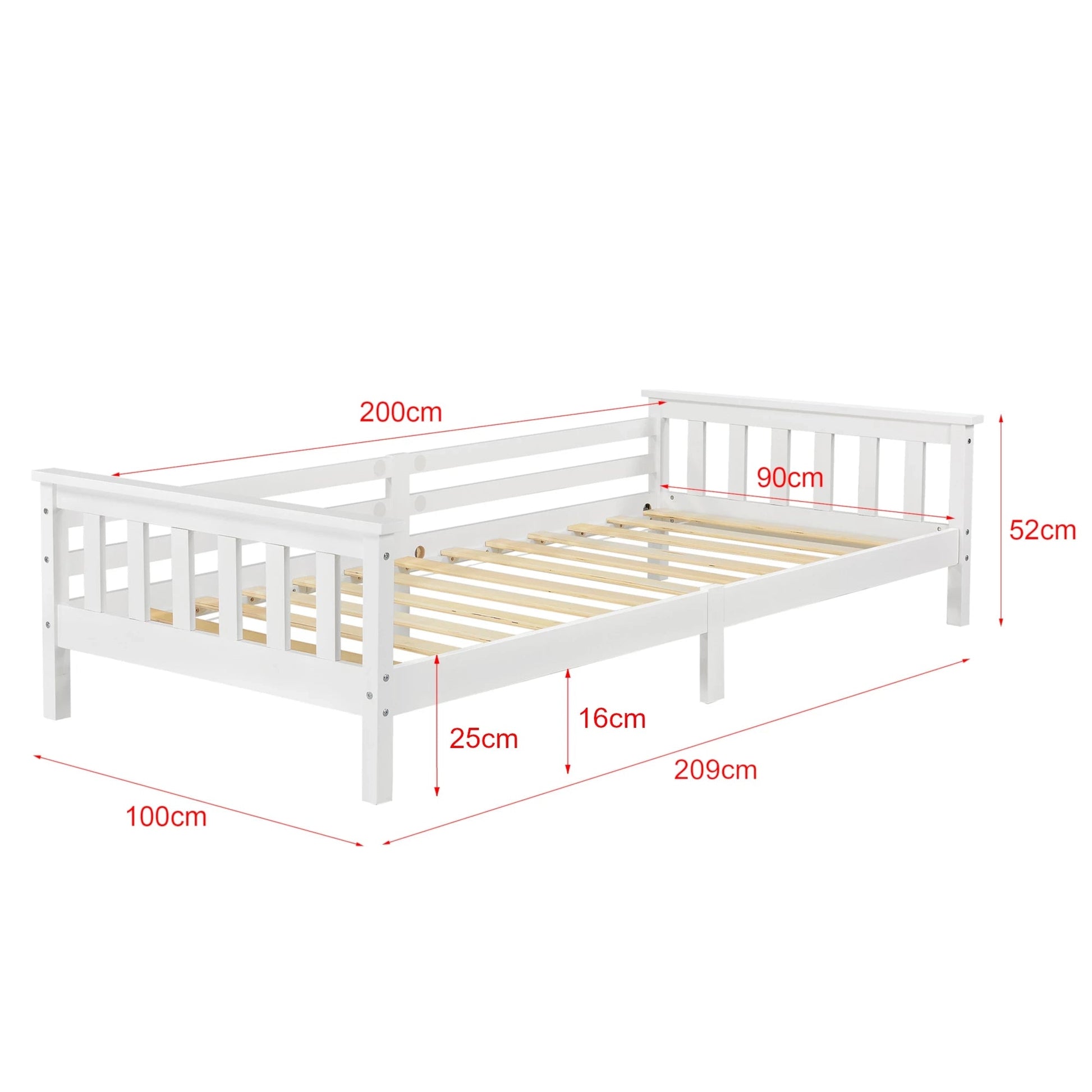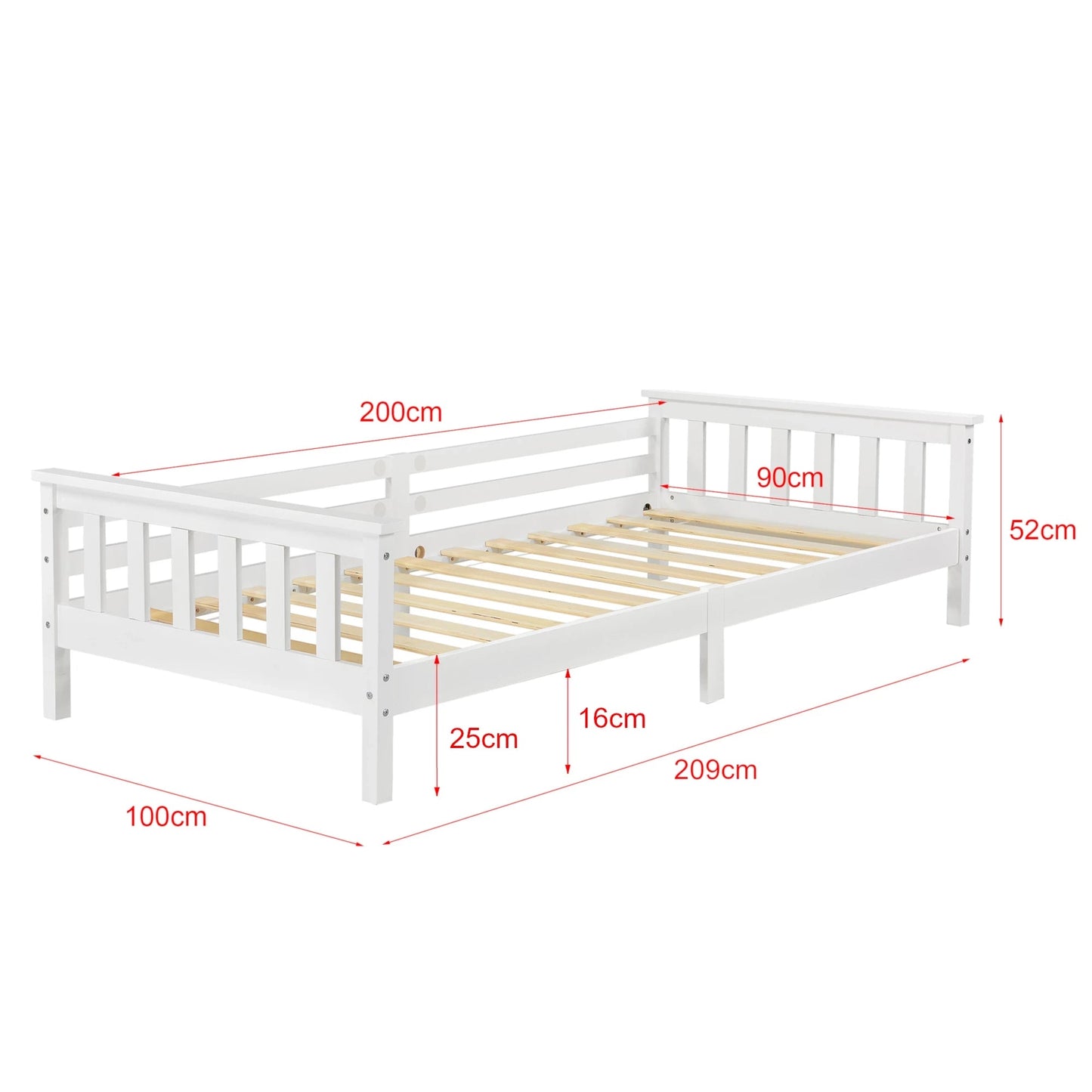 In And OutdoorMatch Children's bed Bruce - With bed base and fall protection - 90x200 cm - White - Spruce and Plywood - For girls - For boys