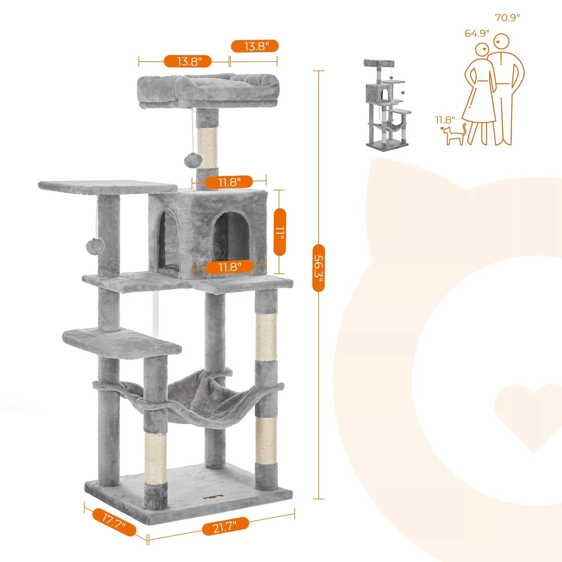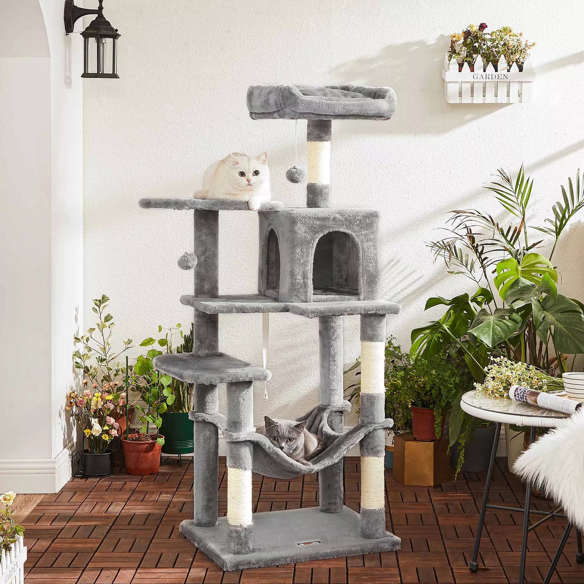 In the creative workshops of InAndOutdoorMatch, two cute kittens jump around, examine all scratching posts personally and give their animal feedback. This way, InAndOutdoorMatch's designers discover first-hand whether the products meet the requirements of spoiled whisker wearers. The highlights of this scratching post at a glance: - durable and soft plush cover - 1 comfortable cuddle hole for hiding - 1 sturdy hammock for naps - 1 well-cushioned viewing platform for relaxation - 1 fur ball for extra playing fun