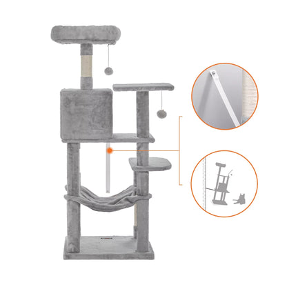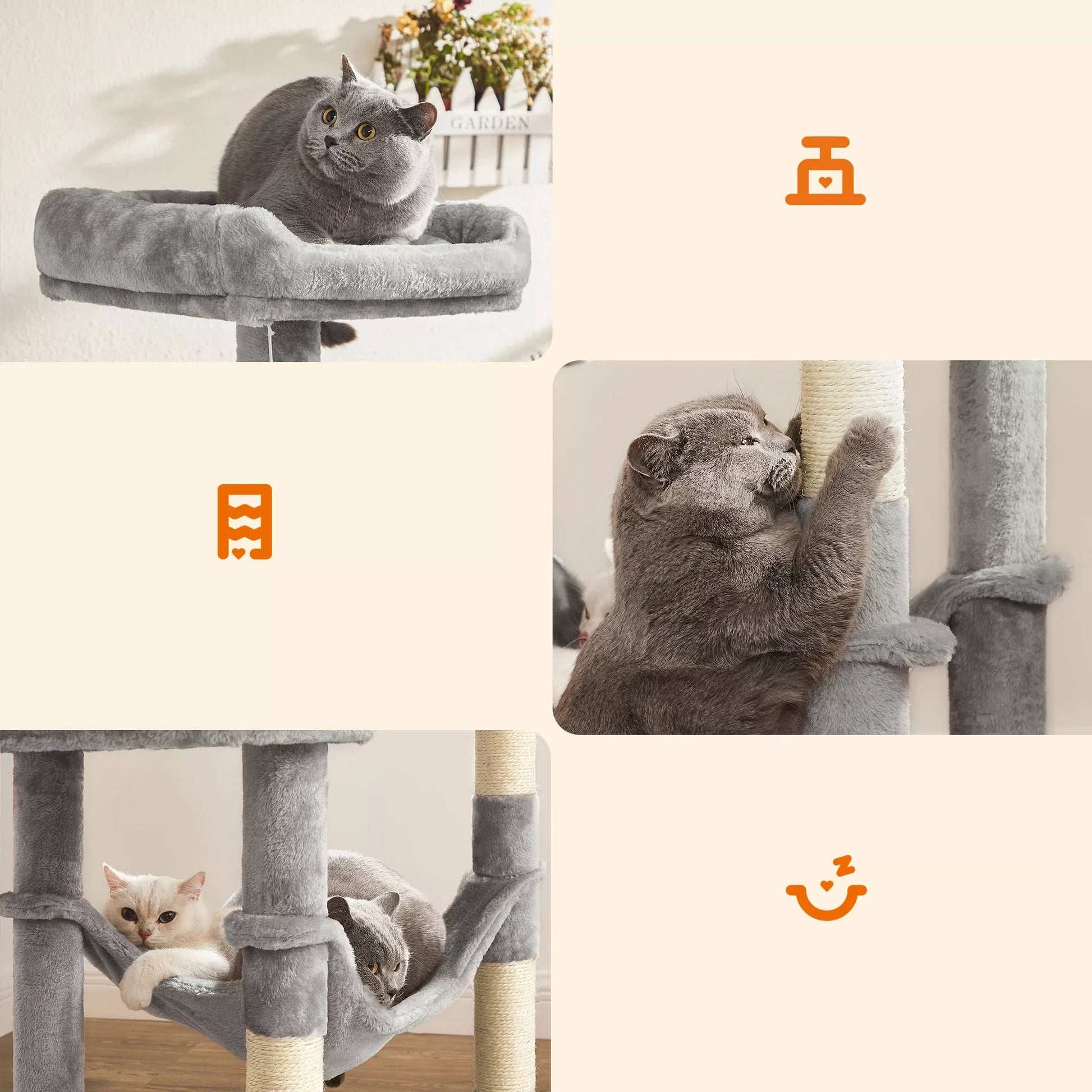 In And OutdoorMatch Scratching Post Gretchen - Scratching Post with Hammock - 143 cm - Light Gray