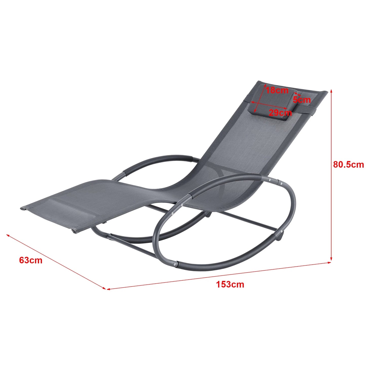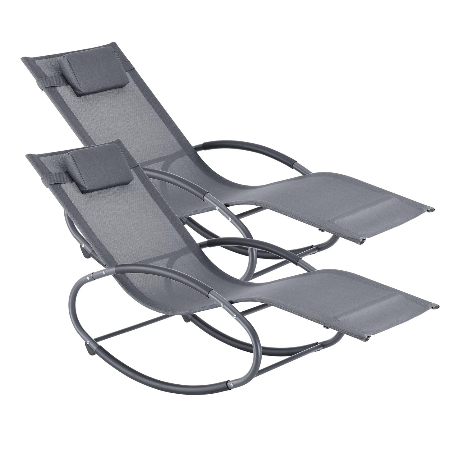 In And OutdoorMatch Lounger Gertrude - Sunbed - Rocking chair - 153x63x80.5 cm - Dark gray - Set of 2