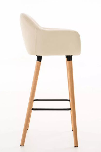 In And OutdoorMatch Luxury Bar Stool Bram - Beige - Imitation Leather - 4-legged Base - Ergonomic Bar Chairs - Set of 1 - With Backrest - Armrest - Footrest - For Kitchen and Bar - Upholstered Seat