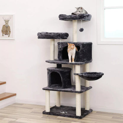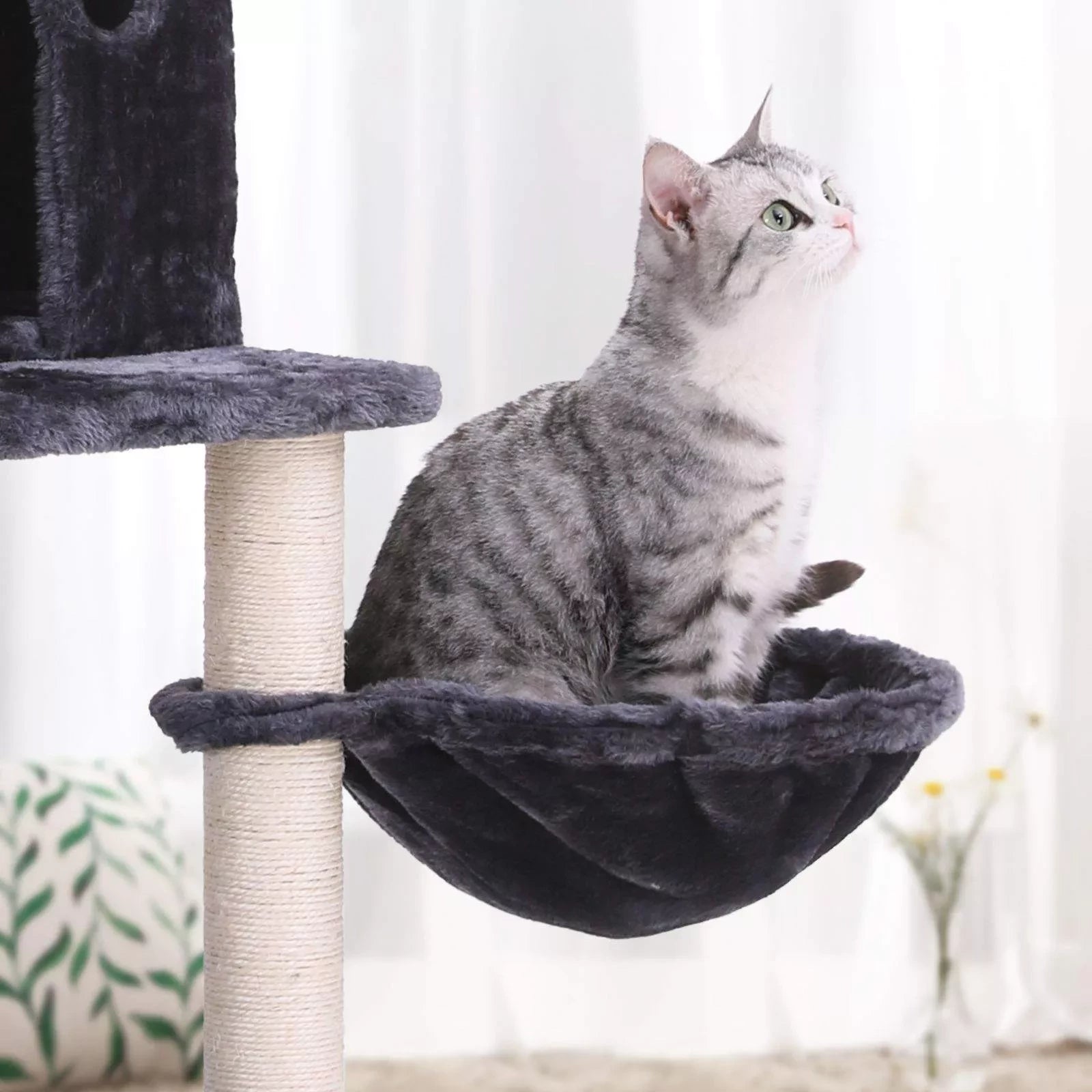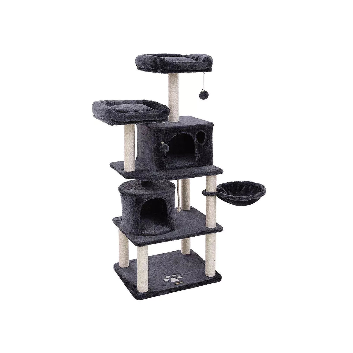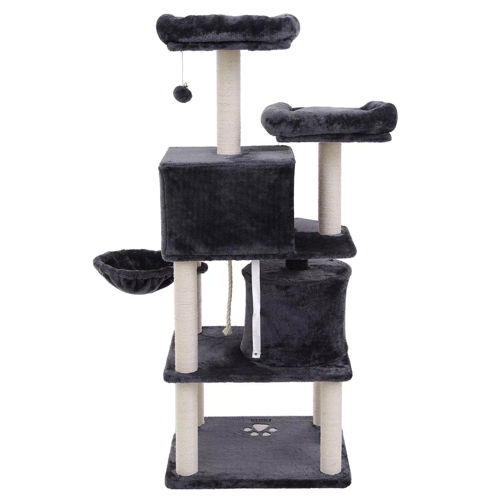 Made of high-quality chipboard and equipped with various nice accessories, this scratching post from Inandoutdoormatch is the perfect combination of excellent quality and multifunctionality. With the scratching posts wrapped with natural sisal cords, your restless cats will no longer scratch your furniture to sharpen their claws. In addition, the dangling toy provides an extra dose of fun.