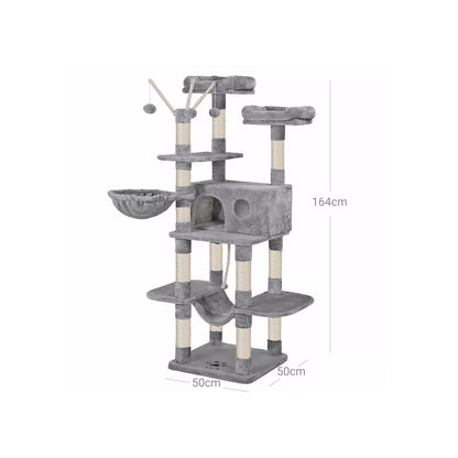 In And OutdoorMatch Luxury Scratching Post Terrence - 50x50x164cm - For Cats - Light Gray - Soft Cat Bed - Hammock - Cat Toys - Suitable for small and large kittens