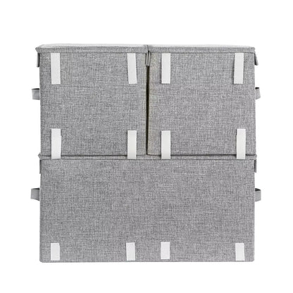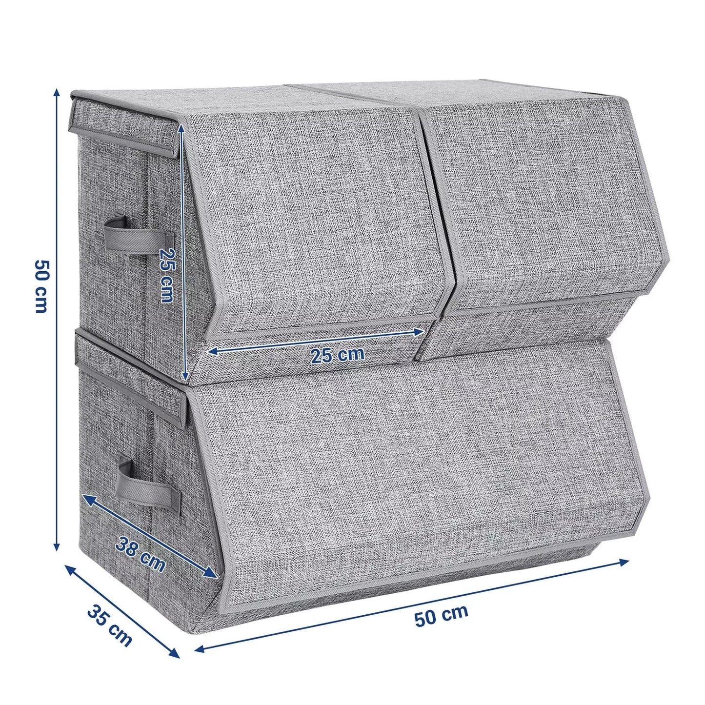 This set of 3 storage boxes from Inand Outdoormatch - 1 x large (50 x 35 x 25 cm) and 2 x small (25 x 35 x 25 cm) - is just the right tool to organize everything and get your home in shape. One set, a thousand applications. These versatile, stackable organizers are perfect for: - the bedroom: in the closet to organize your clothes; next to the bed to store all kinds of small items within easy reach. - In the living room: for books, magazines and newspapers. - In the hallway: for shoes, bags, etc. - In the children's room: for toys and children's clothingProduct Special features: - Color: cover in gray, lining in beige - Material: linen fabric, 3 mm thick cardboard, 3 mm iron frame, 80 g/non-woven fabric - Dimensions of the large box: 50 x 35 x 25 cm (L x W x H) - Dimensions of the small box: 25 x 35 x 25 cm (L x W x H) - Total weight: 3.5 kg - Max. load per box: 10 kg Scope of delivery: - 1 x large box - 2 x small boxes - 1 x manual (DE, EN, IT, FR, ES) Inand Outdoormatch Notes: - The maximum load capacity of each box is 10 kg. Please do not place anything too heavy in the box. - The boxes are not washable; it is recommended to wipe dirt with a damp cloth. - If an unpleasant odor occurs after unpacking, please place the product in a well-ventilated place.