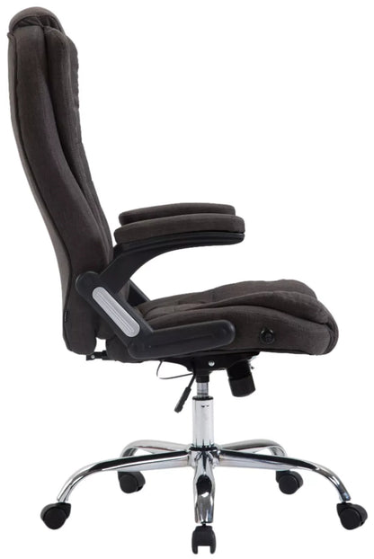 The stylish Genesio Kirk executive chair is characterized by its attractive design and when it comes to comfort, no one can beat it. The high-quality upholstery with classic fabric upholstery ensures a comfortable seating experience. In addition, ergonomic sitting is guaranteed thanks to a continuously adjustable seat height and a built-in rocking mechanism ensures more freedom of movement. Thanks to the maximum load capacity of 150 kg, the office chair is ideal for tall and heavier people. The frame of the office chair is made of metal with a chrome look and stands firmly on five smooth-running wheels. Whether it is hard floors or carpets, you always roll easily and loosely over the floor.