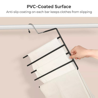 In And OutdoorMatch Space Saving Trouser Hangers Saul - Set of 4 - Multiple clothes hangers - Open ended - Non-slip - For 5 pairs of trousers each - For jeans - Towels - Scarves - Black
