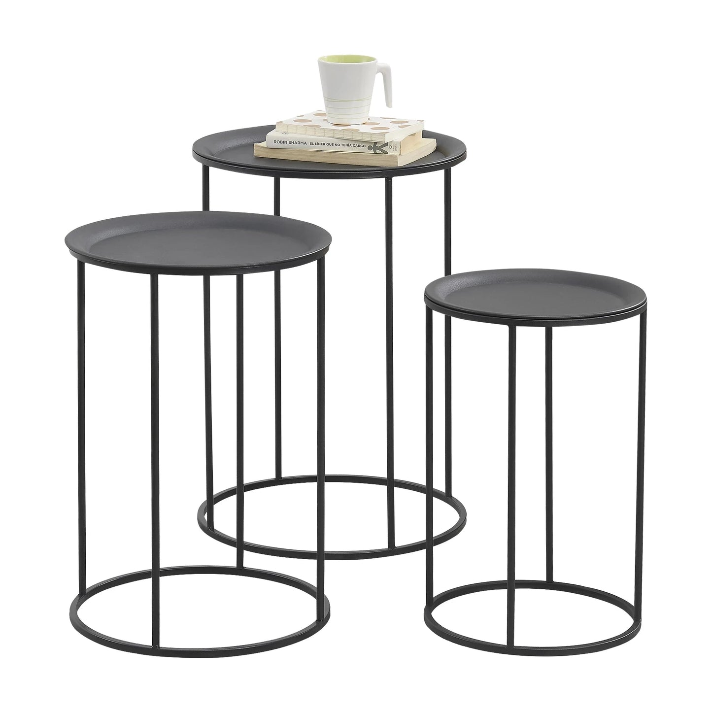 In And OutdoorMatch Coffee Table Garett - Round - Set of 3 - Black - 45xØ30 - 50xØ35 - 55xØ40 cm - Metal - Modern Design