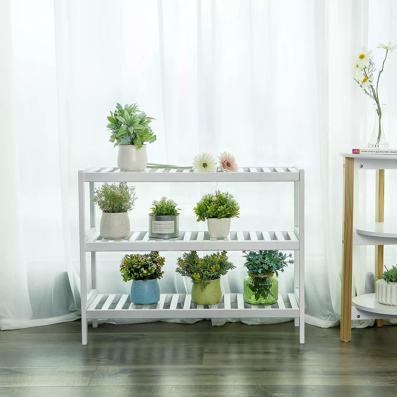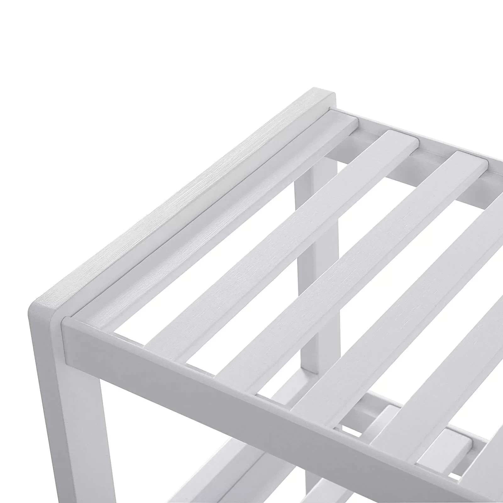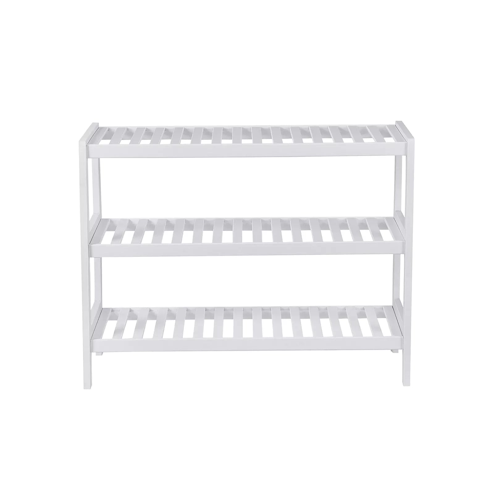 The sturdy storage rack is made of renewable, environmentally friendly bamboo and is versatile. Thanks to its modern design, it suits different living styles. The plank made of robust bamboo pieces ensures good stability under high loads. With this, it can meet your storage needs. In the hallway it can be used to store shoes. In the bathroom you can place your shower supplies on this. You can also use it in the study room to store your books. You probably have more ideas! Product details: Dimensions: 70 x 55 x 26 cm (W x H x D) Package dimensions: 69 x 31 x 11 cm Color: white Material: bamboo Load capacity per level: 10 kg Total load capacity: 30 kg Weight: 3.4 kg Scope of delivery : 1 x shoe rack 1 x hardware bag 1 x manual (DE, EN, FR, ES, IT)