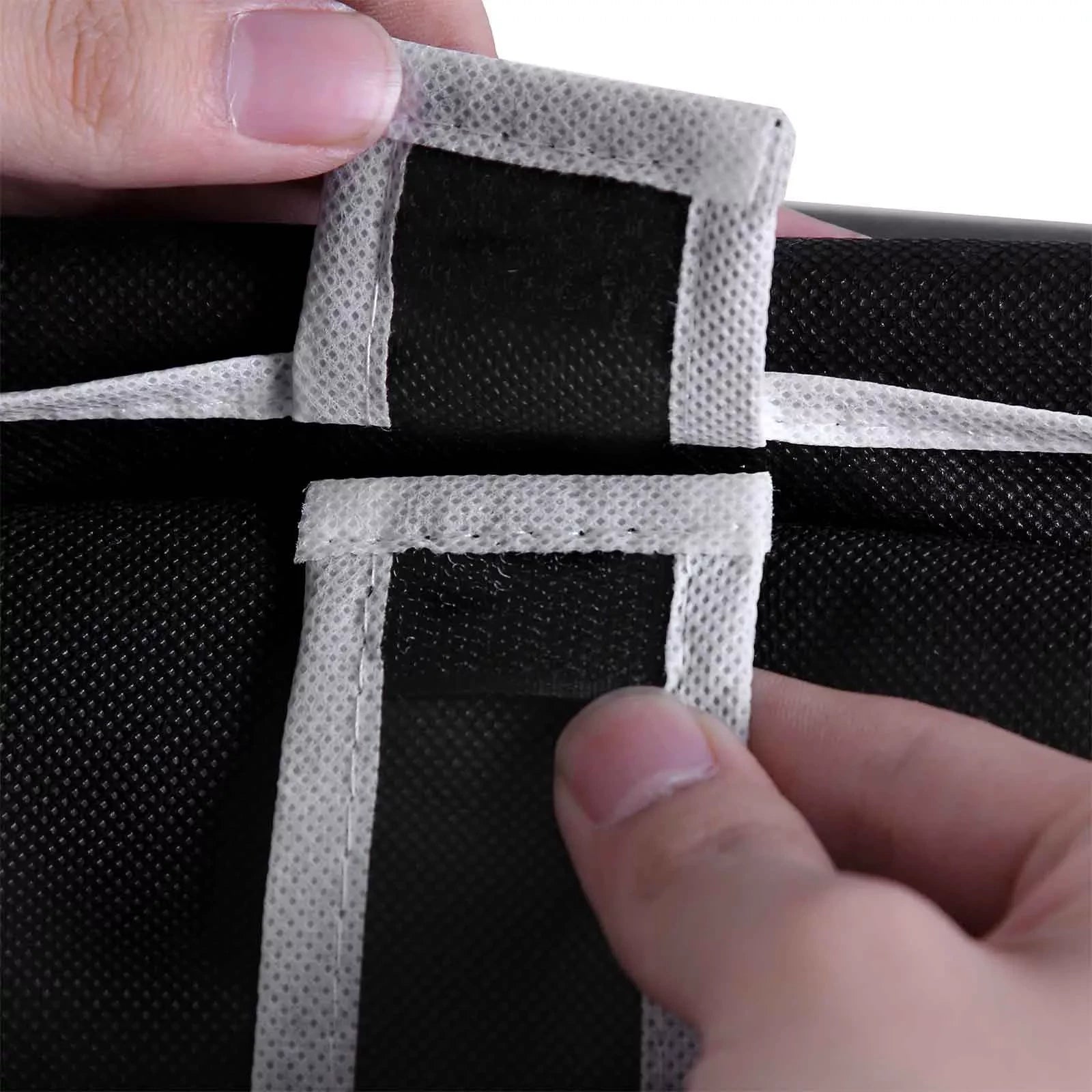 Get this shoe rack and bring your apartment into shape. Inand Outdoormatch will never let you down! Save your home from shoe chaos. Your high heels, your partner's boots and your children's shoes are scattered all over the floor, making it difficult to find the right pair when you wake up in the morning and leave the house? As of today, the search is over! With this shoe rack you can neatly store all your shoes. Finally, shoes that have been hidden under a pile of shoes for a long time get the chance to be worn again! What should you do if the fabric drawer gets dirty? Do not worry! The non-woven fabric is easy to maintain and water-repellent, a damp cloth is sufficient to clean it. Do you want to store your boots? No problem! This shoe organizer is easy to set up and move. During assembly you can leave out one or two planks to make room for your new boots! We also ensure that other shoe items, such as shoe polish or shoelaces, are neatly stored. Just look at the side pockets of the shelf! Super practical! Product details: - Color: black - Material: non-woven fabric, metal pipes, plastic connectors - Distance between shelves: 17 cm - Dimensions: 88 x 28 x 160 cm (L x W x H) - Weight: 2.7 kg - Max. load capacity per shelf: 3 kg Max. load of the entire shelf: 27 kg Scope of delivery: - 1 x shoe rack - 1 x manual (DE, EN, FR, ES, IT) Inand Outdoormatch Notes: - Please do not use the product outdoors.
