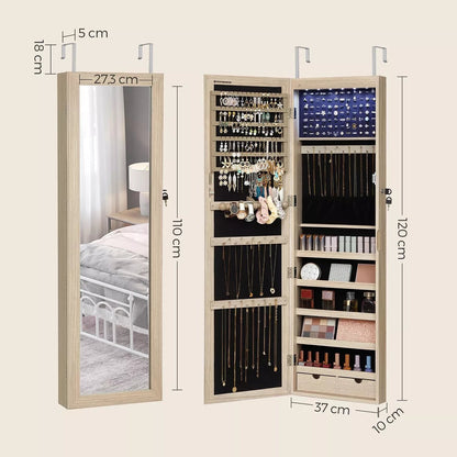 In And OutdoorMatch Mirror Cabinet with Hermina - 120x37cm - With lock - Hangable jewelry cabinet - Jewelry cabinet mirror - Jewelry box