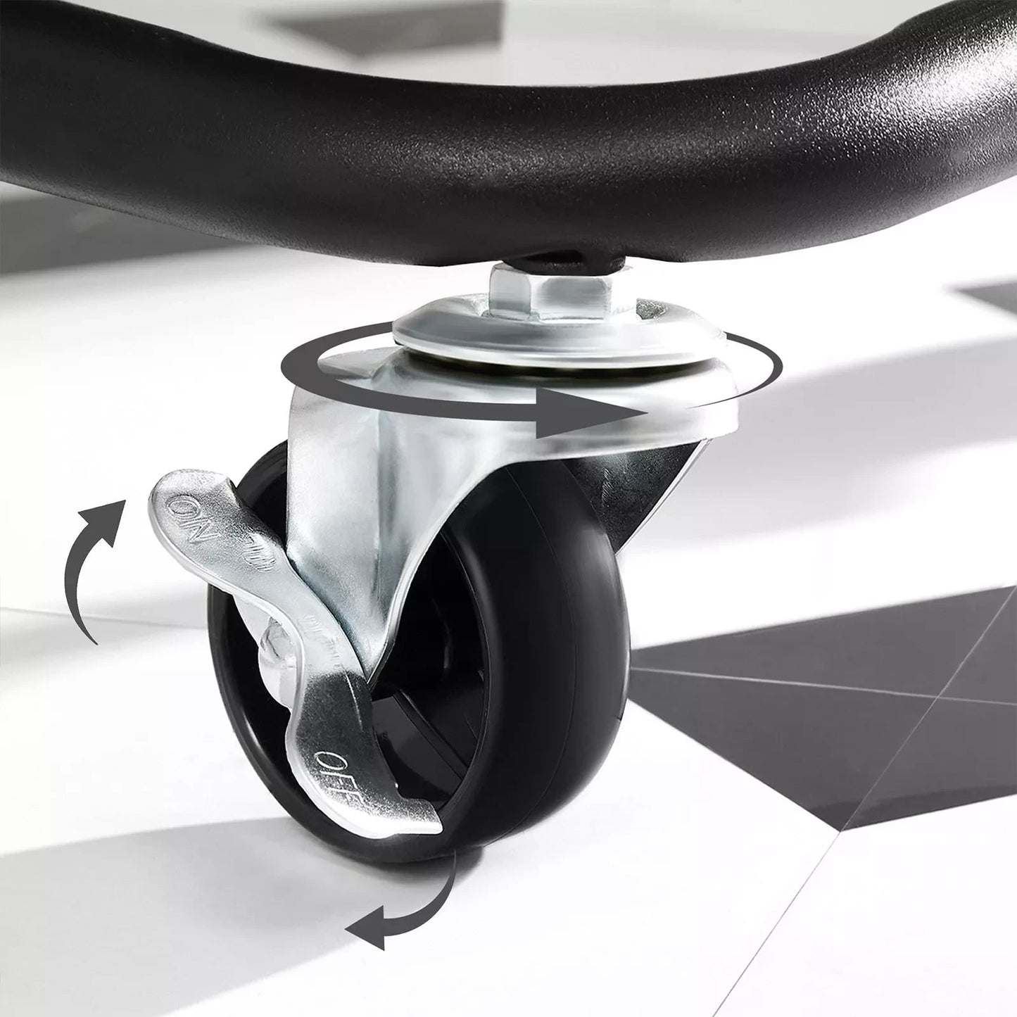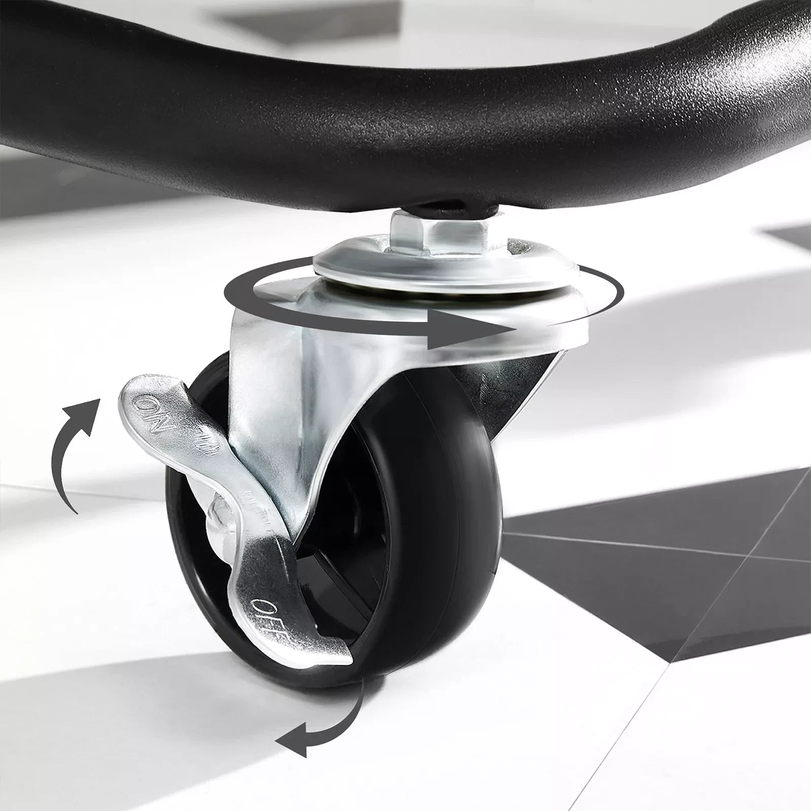 Sturdy steel frame, 3 plastic storage compartments and 4 high-quality wheels (2 of which are lockable). Roll this shelf from Inand Outdoormatch to where you need more storage space. To the laundry room: Slide this shelf into the laundry room to store detergent, fabric softener, cleaning products, etc. for proper storage. Tomorrow is laundry day! But don't worry, all the kitchen utensils are already in the trolley and waiting to be used! In the kitchen: spices on the top shelf, fruit in the middle and vegetables on the bottom - everything has its place! Finally, you can free your worksheets from the chaos and use them wisely again. In the office: You can store your bread supplies on this shelf and thus create order on the desk. To be able to work productively, a tidy workplace is the most important thing! If your brother needs some greenery, you can place some small succulents on the top shelf of this shelf. Think outside the box! Endless applications await this trolley! Rolling out birthday presents as a surprise? store books? Or present small plants... What else? Various items fit in this serving trolley. Product details: Color: Black Material: Steel, PP plastic Dimensions: 41.6 x 33.5 x 86.3 cm (L x W x H) Weight: 3 kg Max. Static load capacity per level: 10 kg Scope of delivery: 1 x trolley 2 x small hanging compartment 1 x accessory package 1 x manual (DE, EN, FR, ES, IT)