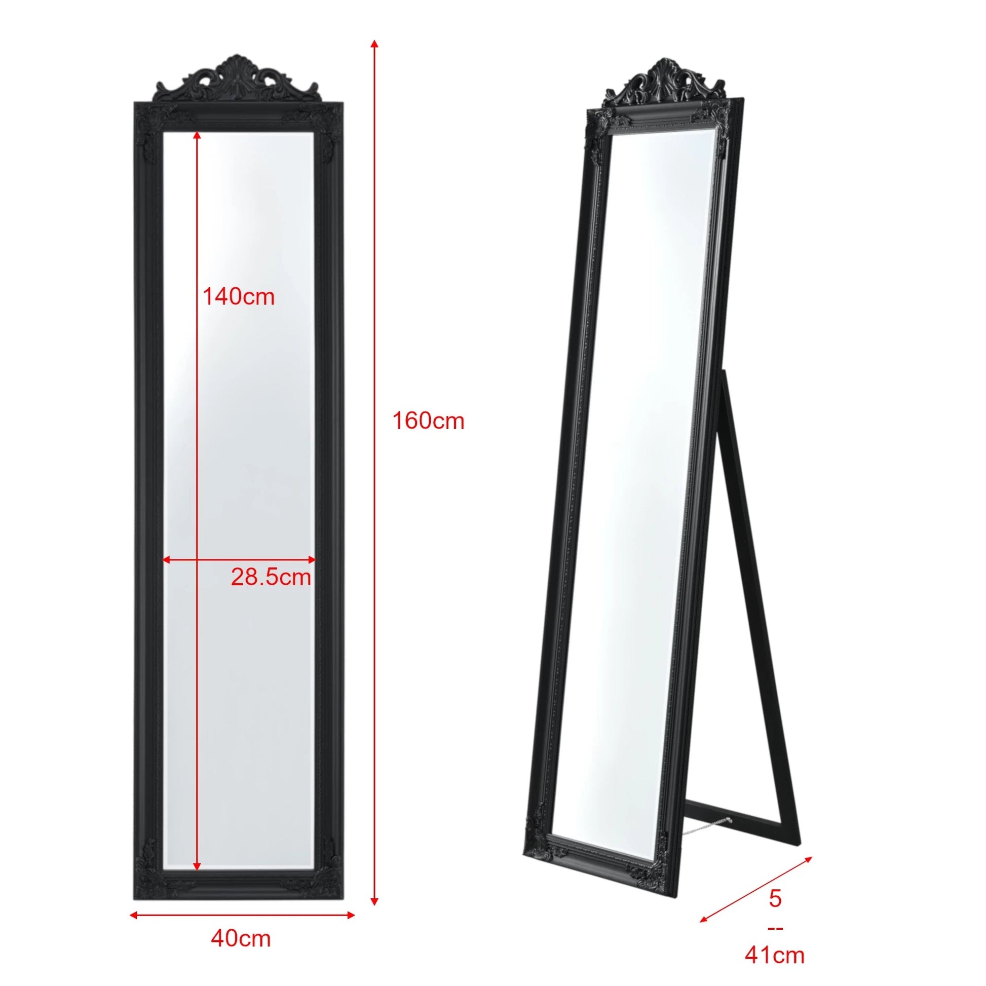 In And OutdoorMatch Freestanding mirror Eulah - With Baroque Frame - Adjustable - 160x40 cm - Black - Eucalyptus wood - Luxury Look