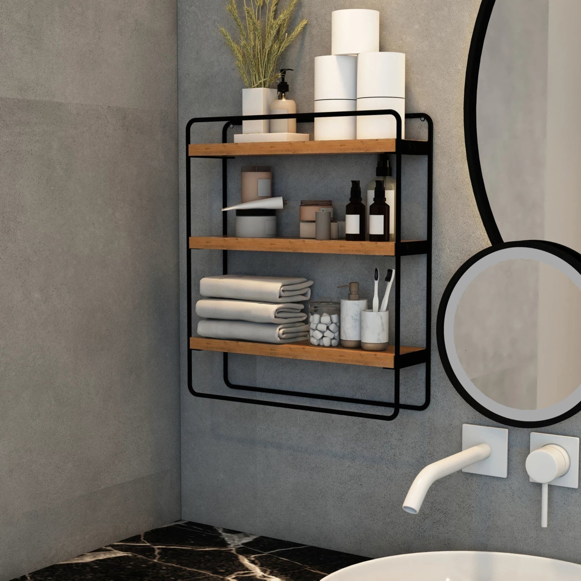 The practical and decorative wall shelf with 3 shelves provides ideal storage space and fits into any room.