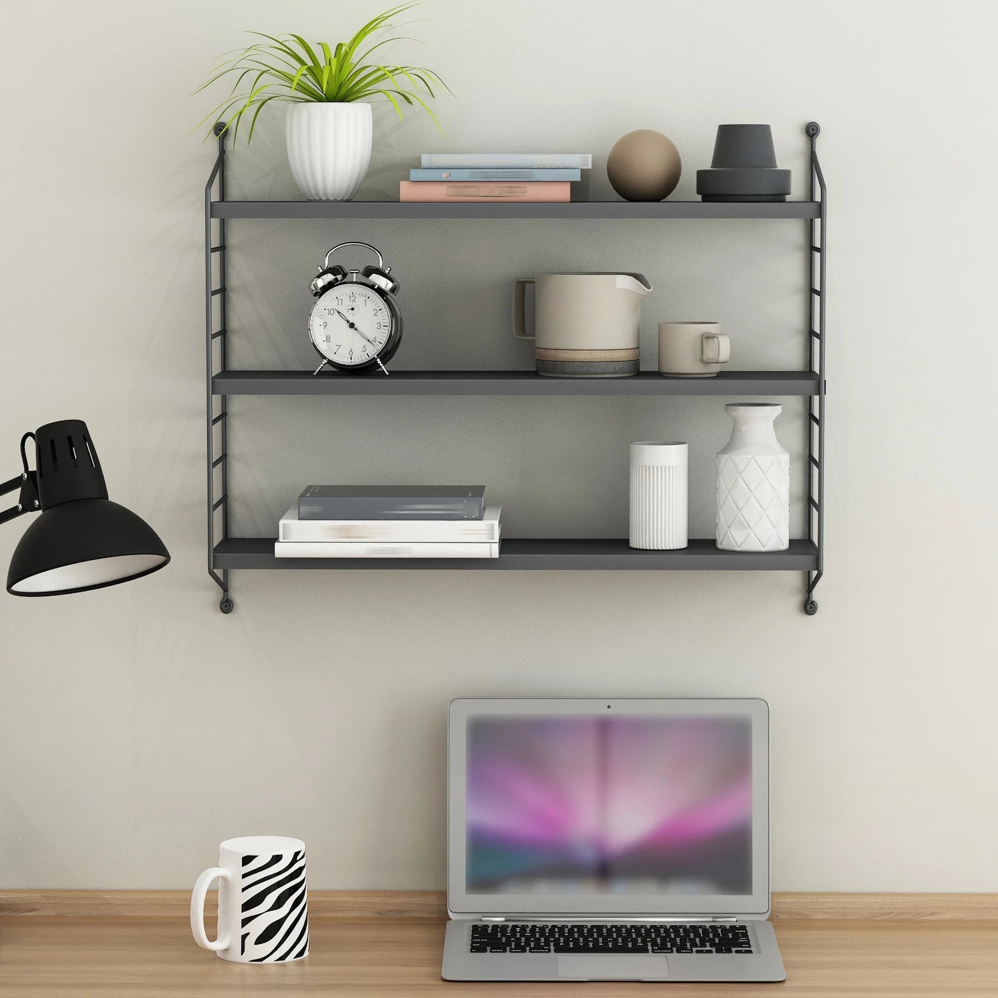 In And OutdoorMatch Wall Rack Nino - With 3 Shelves - 50x60x15 cm - Dark Gray - Steel