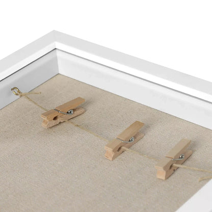 In and OutdoorMatch Photo frame box Horace - Photo frame - with string Small clothespins and pins - DIY - Linen finish - Filling on the inside of the back - Glass panel - MDF - White