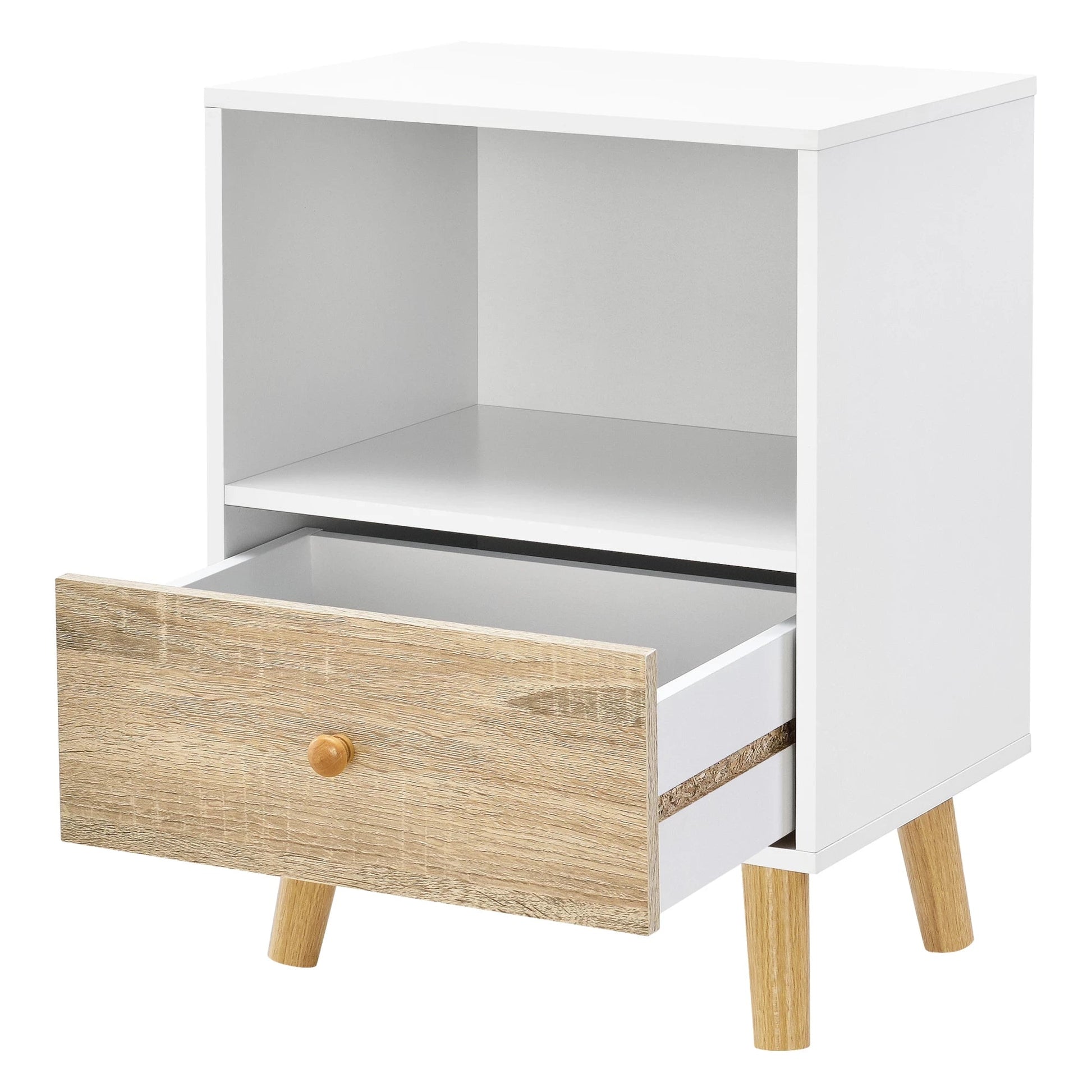 The stylish bedside table or side table with drawer and open compartment is an ideal choice for your bedroom or living room.