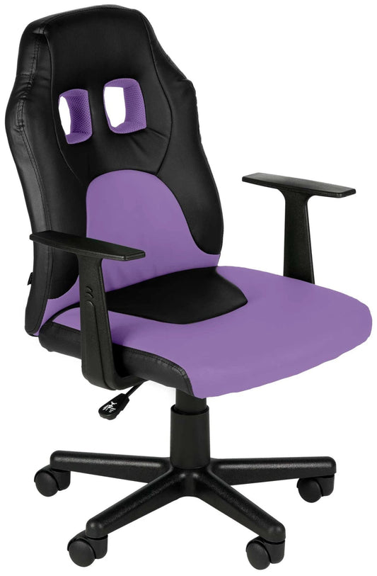 In And OutdoorMatch Kinderbureaustoel Kenna - Zwart en Paars - Kunstleer - Hoogwaardige bekleding - Comfortabel gevoerd - Leuke uitstraling