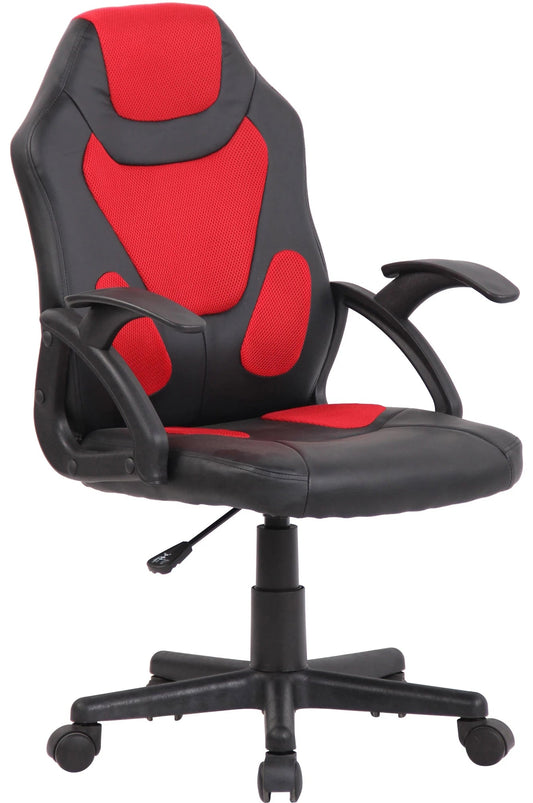 In And OutdoorMatch Kinderbureaustoel Lucio - Zwart en Rood - Kunstleer - Hoogwaardige bekleding - Comfortabel gevoerd - Leuke uitstraling