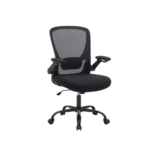 In And OutdoorMatch Bureaustoel Viviane - Computerstoel - Ergonomische stoel - Verstelbare armleuningen en hoofdsteun - Schommelfunctie - Ademende netstof - In hoogte verstelbaar - Zwart