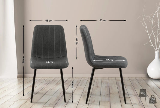 In And OutdoorMatch Eetkamerstoelen Samuel - Zwart - Set van 4 - Stof - Hoge kwaliteit bekleding - Decoratieve eetkamerstoel - Stabiel metalen frame