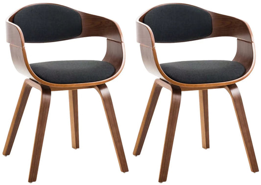 In And OutdoorMatch Stoel Kacey - Eetkamerstoel - Donkerhout - Zwarte stof - Houten poten - set van 2 - Zithoogte 48cm - deluxe