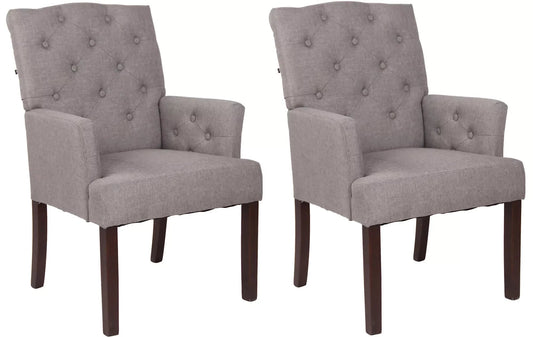 In And OutdoorMatch Eetkamerstoel Ebba - Stoffen Hoes - Comfortabele Stoel - Set van 2 - Luxe Antiek Design - Gestoffeerde Zitting - Grijs