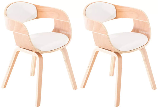 In And OutdoorMatch Stoel Roy - Eetkamerstoel - Grijs - Wit imitatieleer - Houten poten - set van 2 - Zithoogte 49cm - deluxe
