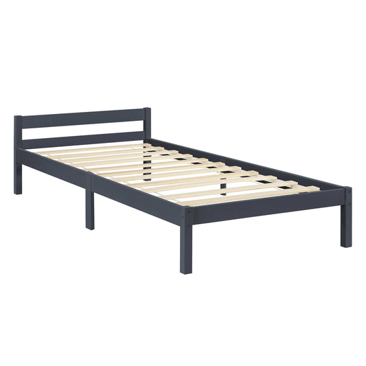 In And OutdoorMatch Houten Bed Chandler - Grenen - Met Bedbodem - 90x200 cm - Donkergrijs - Snelle Montage