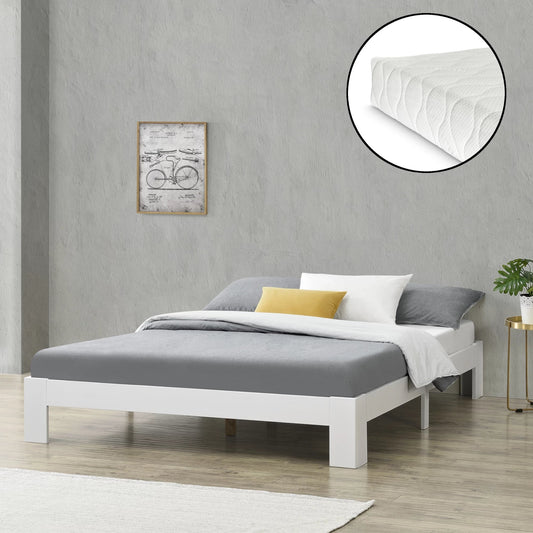 In And OutdoorMatch Houten Bed Antonetta - Met Bedbodem en Matras - 160x200 cm - Wit - Gemaakt in de EU - Slijtvast