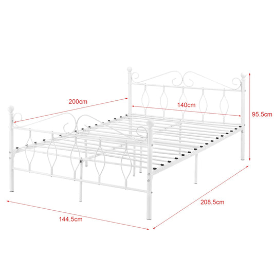 In And OutdoorMatch Metalen Bed Jazmyne - Staal - Met Bedbodem - 140x200 cm - Wit - Snelle montage