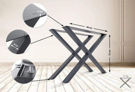 In And OutdoorMatch Tafelpoten Sandra - 2x - X-vormig tafelframe - Stalen tafelpoten - Zwarte tafelpoten - Industriële stijl - M