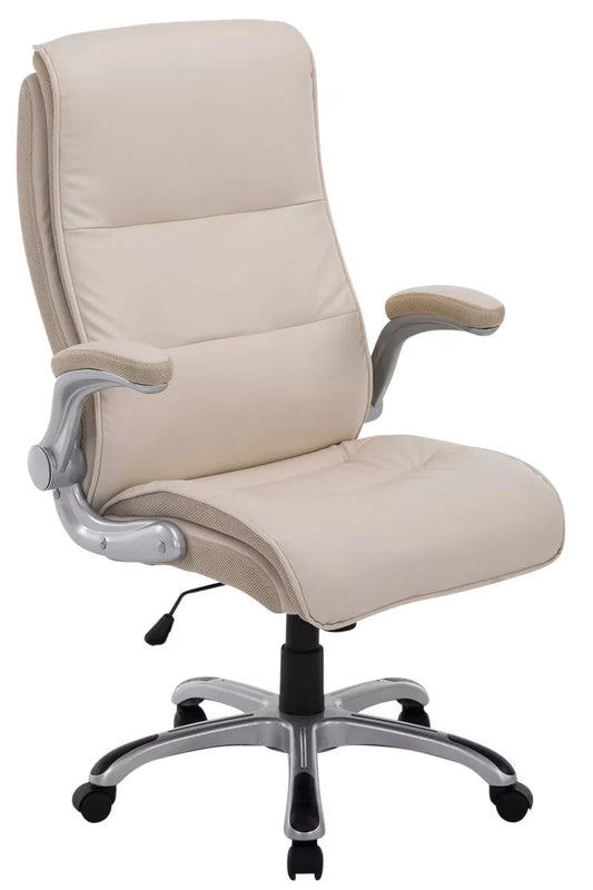 In And OutdoorMatch Designer barkruk Ted - Creme kunstleer in combinatie met houten zitting - in hoogte verstelbaar - zithoogte 63 tot 77 cm - deluxe