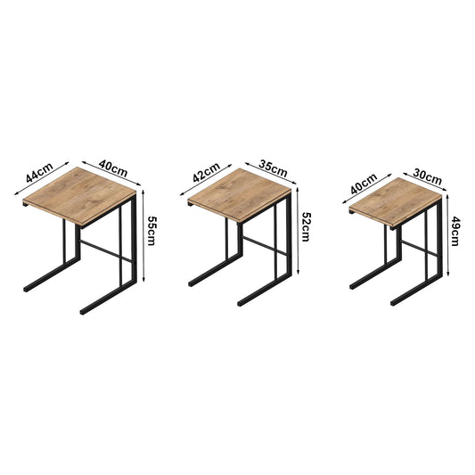 In And OutdoorMatch Bijzettafel Menna - Set van 3 - Zwart en Eikenkleurig - Spaanplaat en Metaal - Veelzijdige Bijzettafels - Modern Design