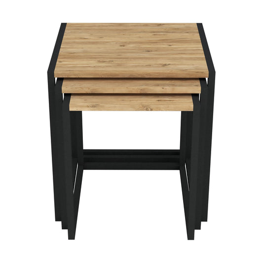 In And OutdoorMatch Bijzettafel Lina - Set van 3 - Zwart en Houtkleurig - Spaanplaat en Metaal - Stijlvol Design