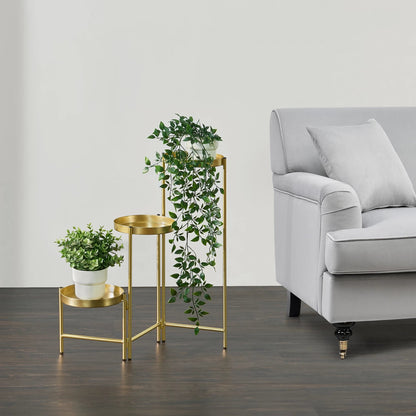In And OutdoorMatch Bloempot Genesis - Op Standaard - Metaal - 60x60x18 cm - Met 3 Bakken - Modern Design - Messing