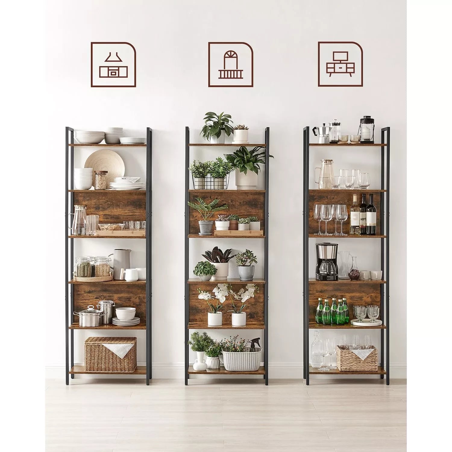 Productdetails: - Kleur: vintage bruinzwart - Materiaal: spaanplaat, staal - Afmeting: 60 x 24 x 186 cm (L x B x H) - Gewicht: 13,1 kg - Max. statisch draagvermogen per plankniveau: 23 kg Leveringsomvang: - 1 x boekenplank - 1 x accessoirepakket - 1 x anti-kantel - 1 x handleiding Inand Outdoormatch Opmerkingen: - Om veiligheidsredenen mogen kinderen niet op de kast klimmen of ermee spelen. product.- Bevestig dit product aan de muur met de meegeleverde anti-tip.