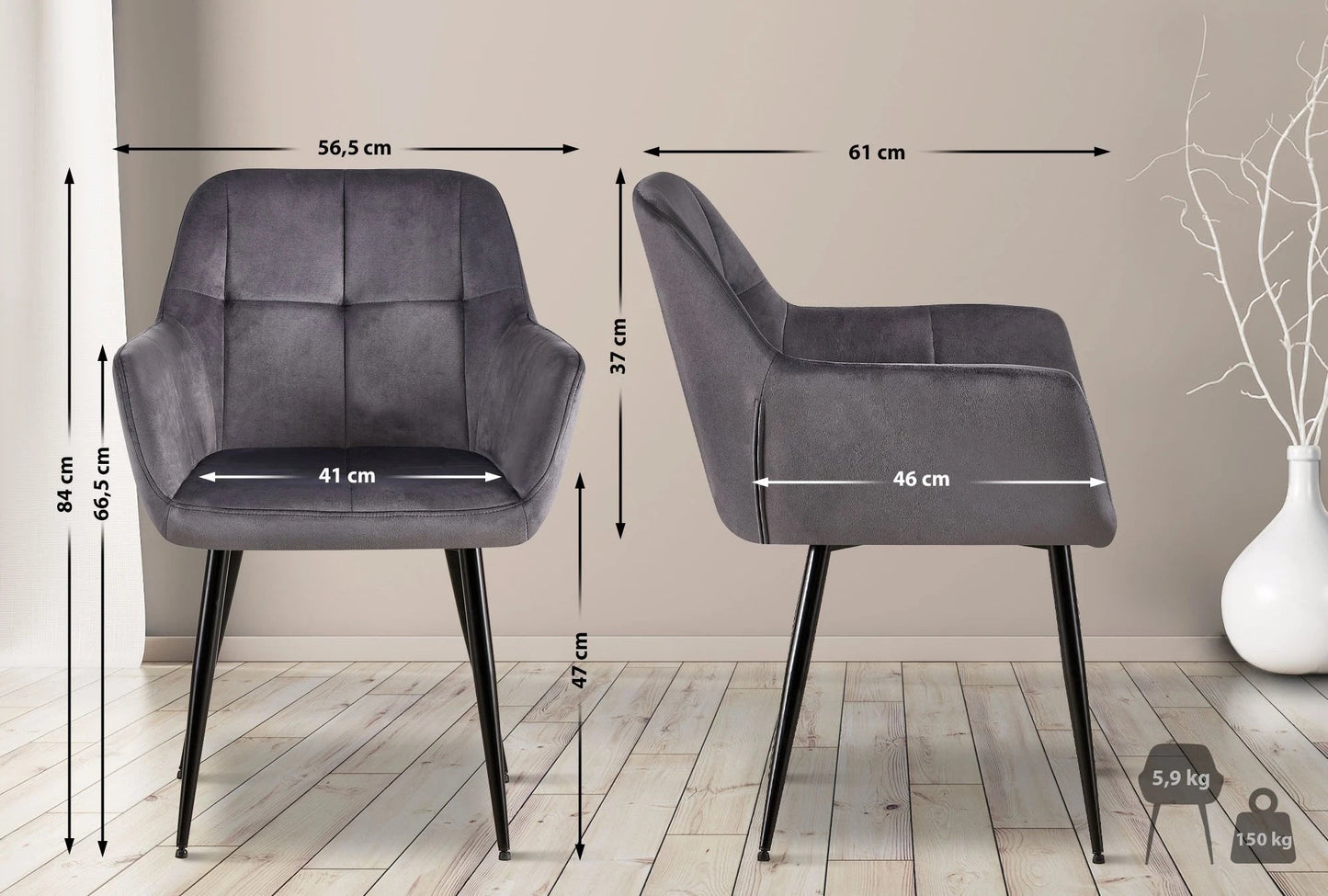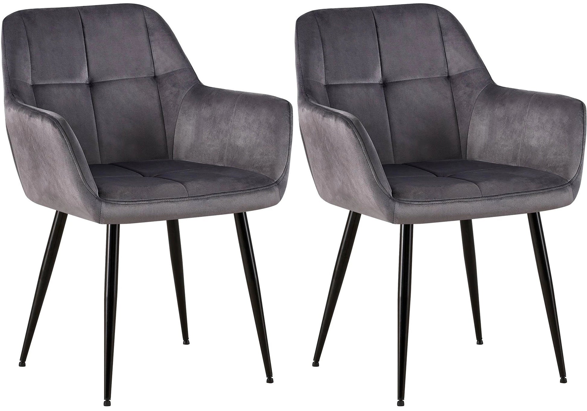 In And OutdoorMatch Eetkamerstoel Bertrand - Grijs - Set van 2 - Fluweel - Hoogwaardige bekleding - Luxe eetkamerstoel - Moderne look