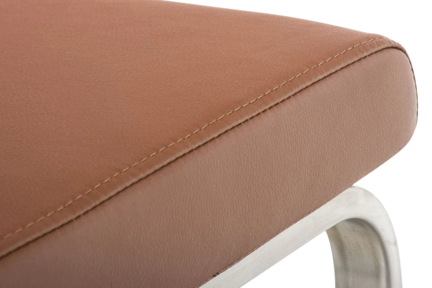 De brede zitting en hoge rugleuning zorgen ervoor dat u comfortabel kunt zitten, ook voor langere tijd. De aangenaam gevoerde zitting met fijne kunstleren bekleding belooft comfort en ziet er eenvoudigweg chic uit. Bovendien zwaaien ze vrij en passen ze zich precies aan de beenlengte en het gewicht van de zittende persoon aan. Dankzij de onderhoudsvriendelijke materialen zijn de zitting en het roestvrijstalen frame bovendien snel en eenvoudig schoon te maken.