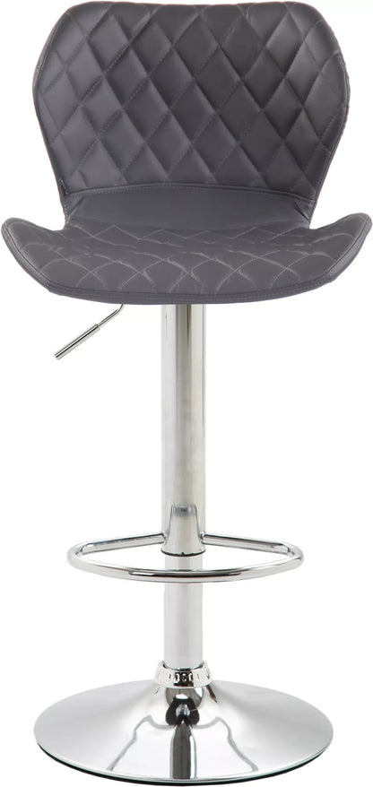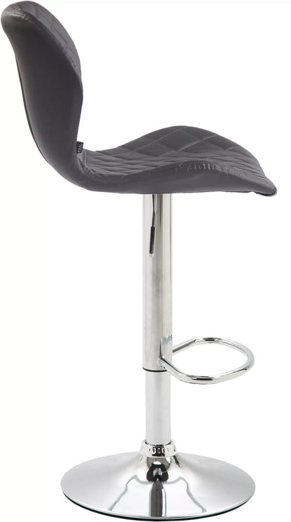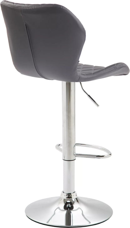 In And OutdoorMatch Moderne Barkruk Everardo - Grijs - Chroom - Luxe Design - Rugleuning - Voetensteun - Voor Keuken en Bar - Gestoffeerde Zitting - Imitatie Leder
