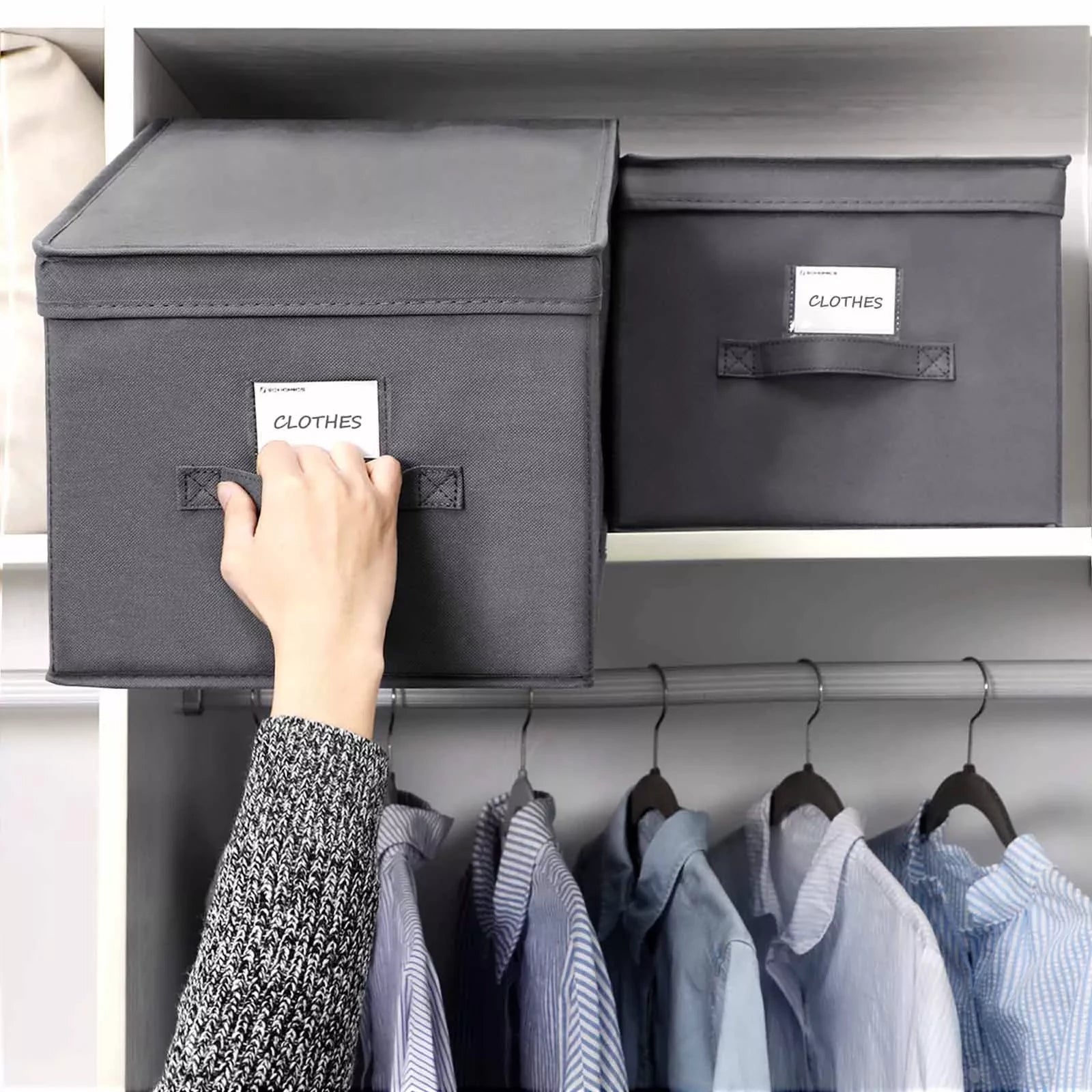 MULTIFUNCTIONEEL: De 3 stoffen dozen zijn uitgerust met etikethouders, waarmee u kleding, klein keukengerei, accessoires en speelgoed kunt sorteren en bijhouden. Eenvoudig op te zetten en opvouwbaar om ruimte te besparen. UITERLIJK: Gemaakt van niet-geweven stof en karton. Deze stoffen kubussen hebben een eenvoudige uitstraling en verfijnd vakmanschap, de naden zijn schoon.